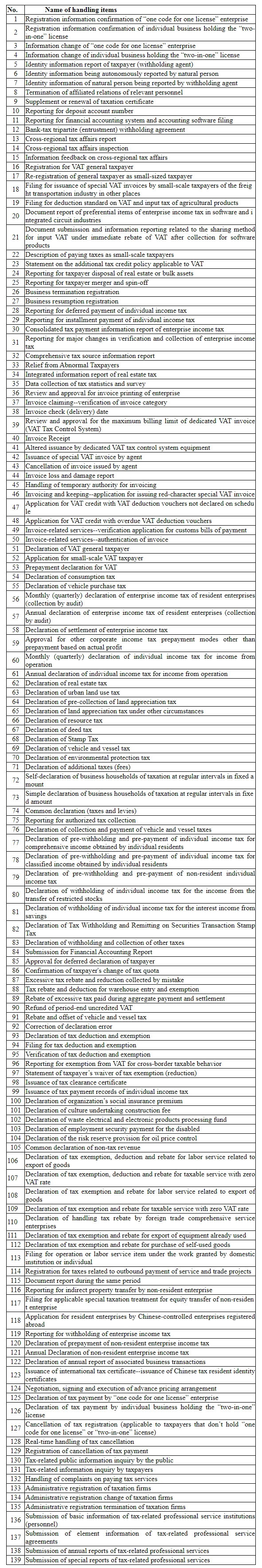 In order to implement the decisions of the State Council to promote the reform of delegating powers, improving regulation and optimizing services, further improve 'the business environment for taxation in Beijing, ease tax payment and lighten taxpayers' burden, the List of Beijing Municipal Tax Service, State Taxation Administration for Whole-Course Online Handling of Tax Affairs (hereinafter referred to as the "List") is hereby formulated and released by Beijing Municipal Tax Service, STA. The contents of the List shall be subject to adjustment by Beijing Municipal Tax Service, STA according to policy changes, and shall be released on the official website in a timely manner.
