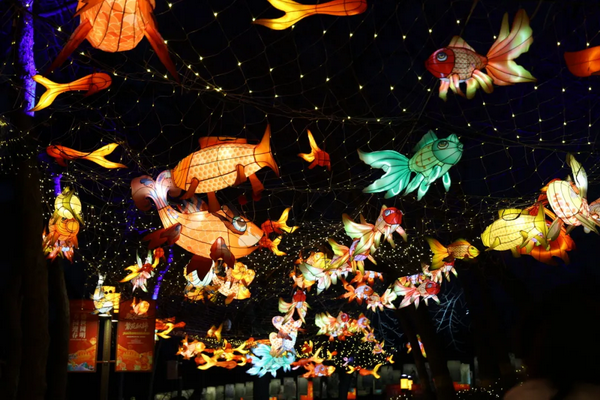 At 19:00, the students gathered at the Qichunyuan Palace Gate. Accompanied by staff from the District Government Foreign Affairs Office and university faculty, they entered the lantern festival grounds. As night fell, large-scale lantern installations themed "Success Upon Arrival" and "Good Fortune and Auspiciousness" were illuminated in sequence. These varied and colourful displays, blending traditional craftsmanship with modern lighting technology, transformed the classical gardens into a dreamlike realm. The students wandered enthusiastically through the sea of lanterns, pausing frequently to admire the exquisite craftsmanship and capture photographs.
