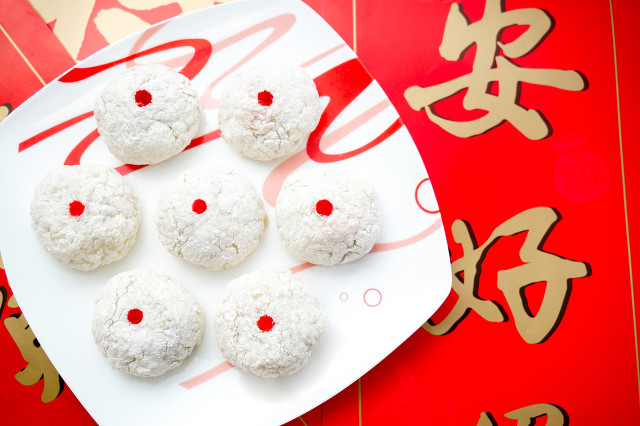 Ai Wo Wo, or steamed rice cakes with sweet stuffing, is made of glutinous rice or millet flour with sweet filling. It first appeared during the Yuan Dynasty (1279-1368) and was a favorite of the imperial families of the Ming Dynasty. The cake, which has a sticky texture and is white as snow, tastes sweet and comes with a variety of stuffings, such as ground rock sugar, hawthorn, sesame, green plum fruit, or mashed Chinese jujube. Traditionally, it is eaten from the Lunar New Year to the end of summer, but it is now sold throughout the year.