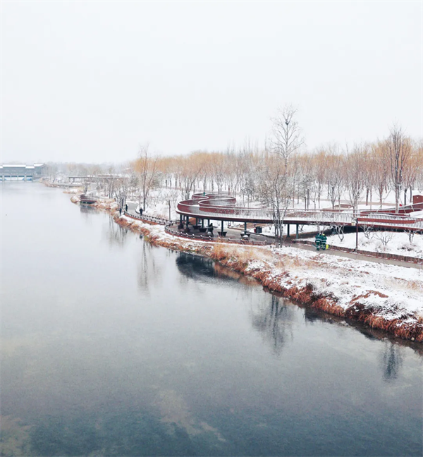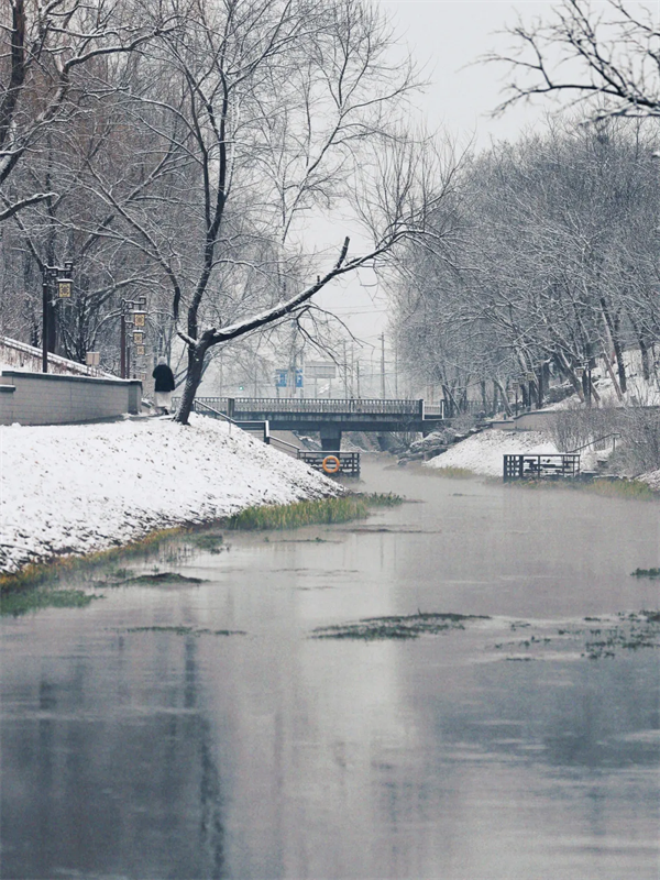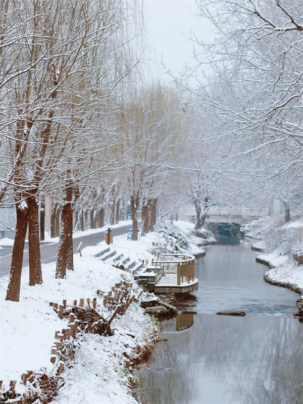 Haidian's rivers are draped in silver, with clear waters mirroring the beautiful scene.
