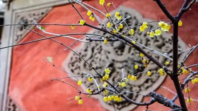 If you prefer tranquility or enjoy scenery where ancient buildings and flowers blend harmoniously, then Biyun Temple, with a history of nearly 700 years, is a must-visit. The temple's wintersweet trees can be primarily found in the Meditation Hall Courtyard and the Pagoda Courtyard. Currently, the wintersweet in front of the Meditation Hall Courtyard is in bloom, while those in the Pagoda Courtyard remain mostly in plump buds, ready to unfold.