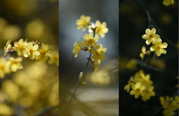 By riverbanks, on street corners,The winter jasmine is the first to wake.Golden blossoms crowd the branches,Like spring's welcoming parade,Calling out: "This way, spring starts with me!"